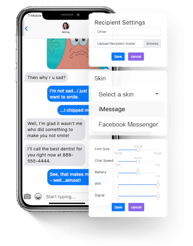 At the touch of a button, customize each TxtVideo’s font size, chat speed, mobile provider, personal images & much more.