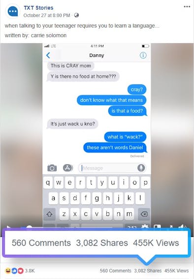 Or 455,000 views, with 3,000 shares and over 560 comments - all from ONE video